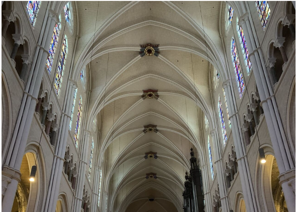 스테인드글라스의 특징: 이 성당의 스테인드글라스는 약 2,600㎡에 달하는 규모로, 성경 이야기와 성인들의 삶을 다채로운 색상과 섬세한 디테일로 표현하고 있습니다. 특히, '청색의 샤르트르'라 불리는 독특한 청색 유리는 이 성당의 스테인드글라스가 가진 가장 눈에 띄는 특징 중 하나입니다.